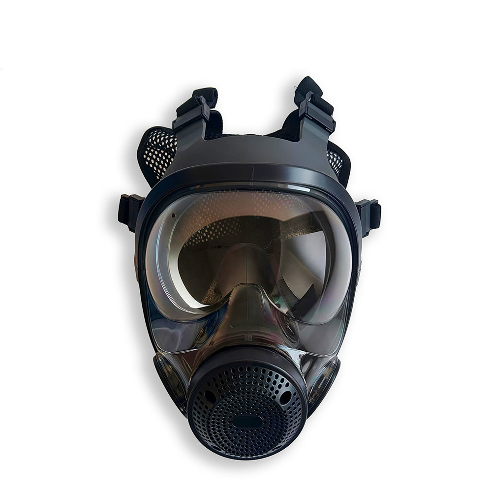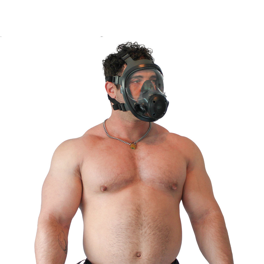 Gasmaske mit großem, klaren Kunststoffglassichtfeld. Der Clou bei dem Modell ist die Doppel Luftzuführung links und rechts, dadurch kann mit zwei Gasmaskenschläuchen gearbeitet werden und so individuelle Verschlauchungen realisiert werden.