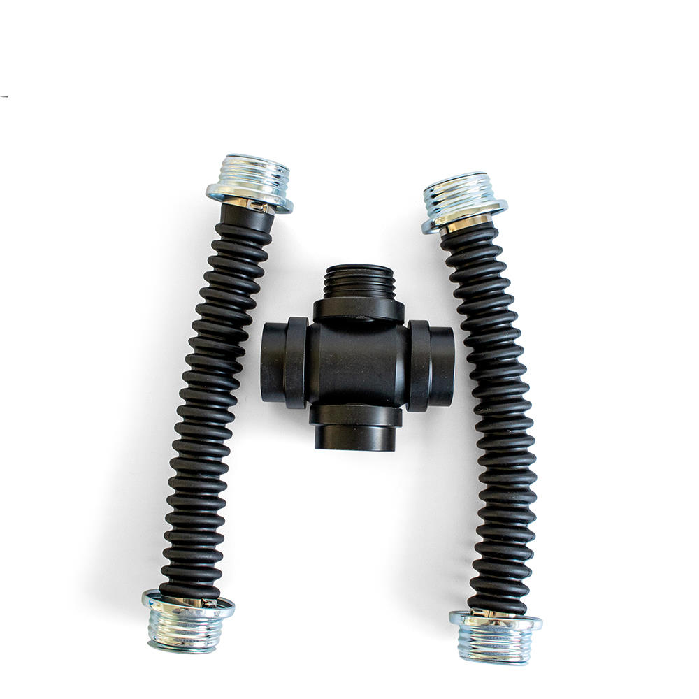 Set zwei kurzen Gummi Gasmaskenschläuchen und Mittel-Anschluss. Die tollen kurzen Gummischläuche sind aber auch für andere Anwendungen sehr praktisch.
