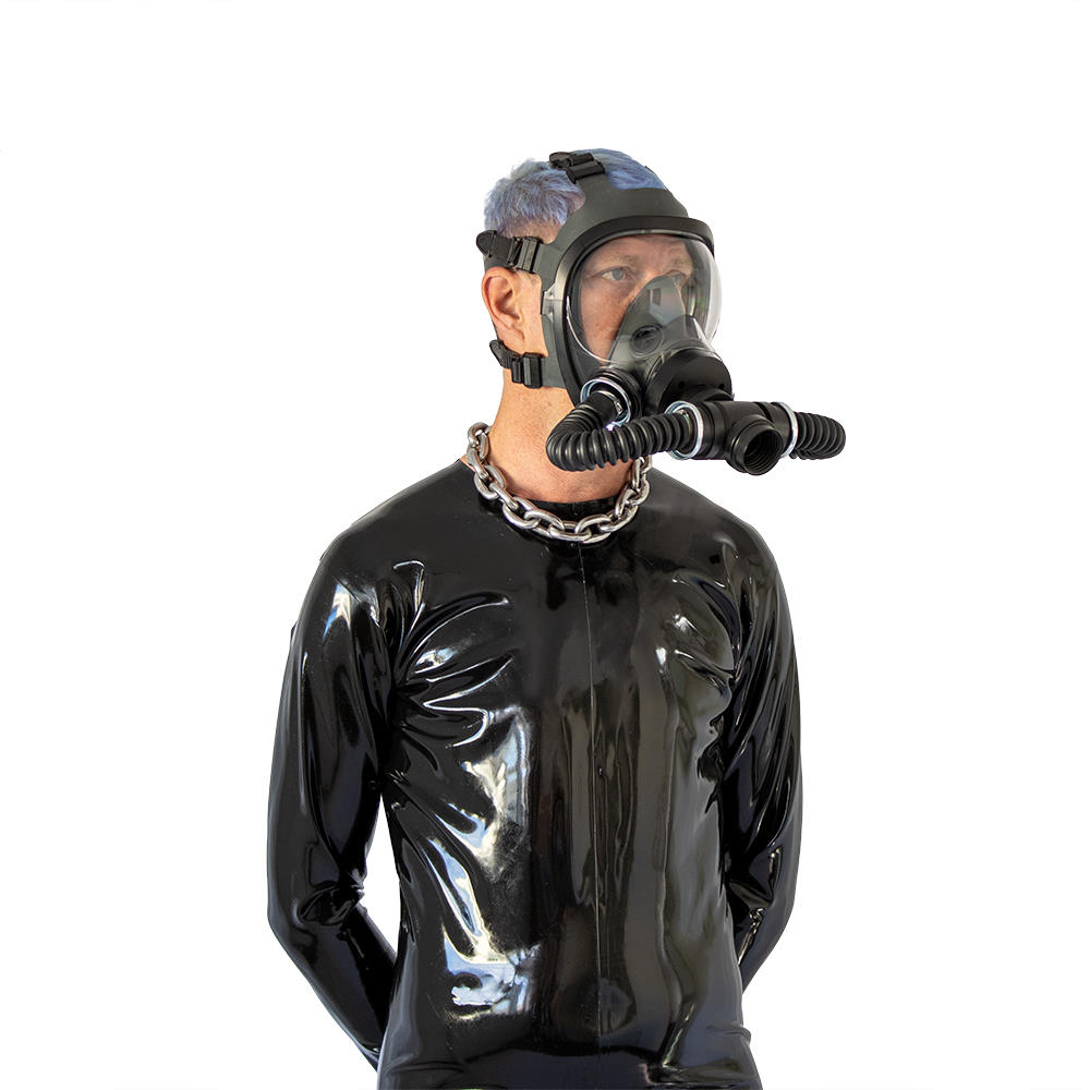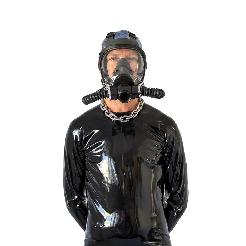 Angeschlossen wir die wird die Ausatemluft teilweise in die Atemluft wieder eingespeist, die unteren Öffnungen sorgen für etwas Frischluft.