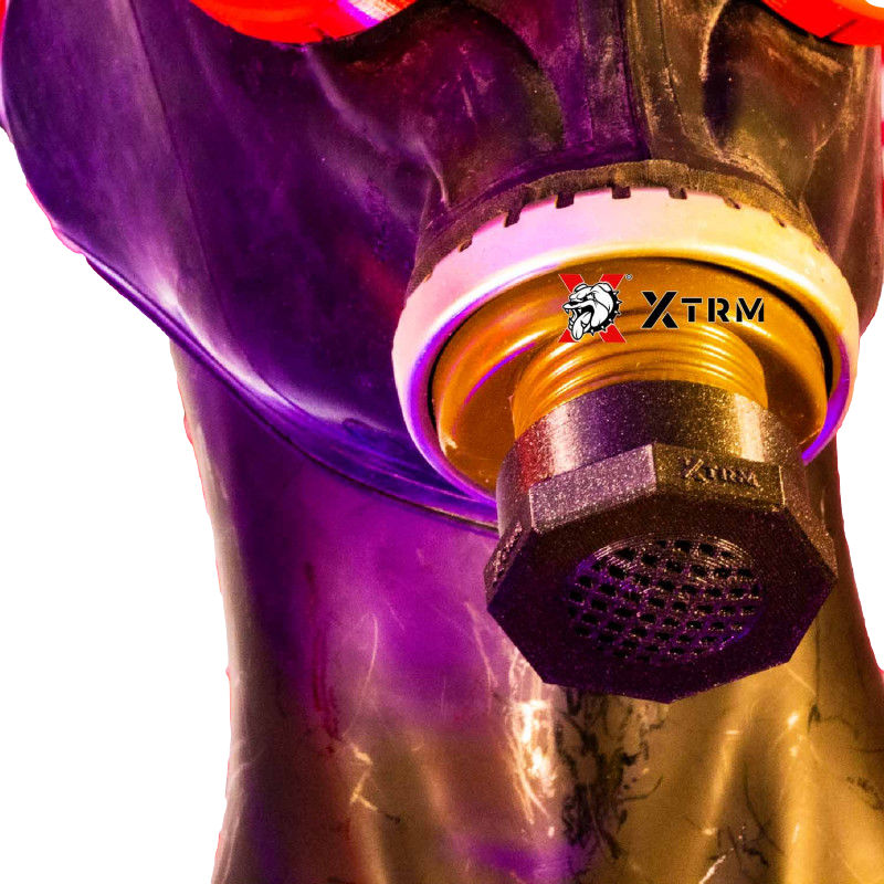 Der Kunststoff Luftzufuhrregler kann in jedes Gasmaskengewinde geschraubt werden (ob direkt in der Maske, am GP5 Gasmaskencover oder in einen Gasmaskenschlauch) Durch Drehen am vorderen Teil wird die durchströmende Luftmenge verringert bzw ganz abgestellt.