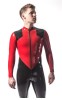 Herrenganzanzug aus Latex mit mehrwege Vorderreißverschluss durch den Schritt. Körperbetonendes Design in auffälligem schwarz/rot. Ohne Füßlinge. Europäische Designer Qualität von 101 Latex.