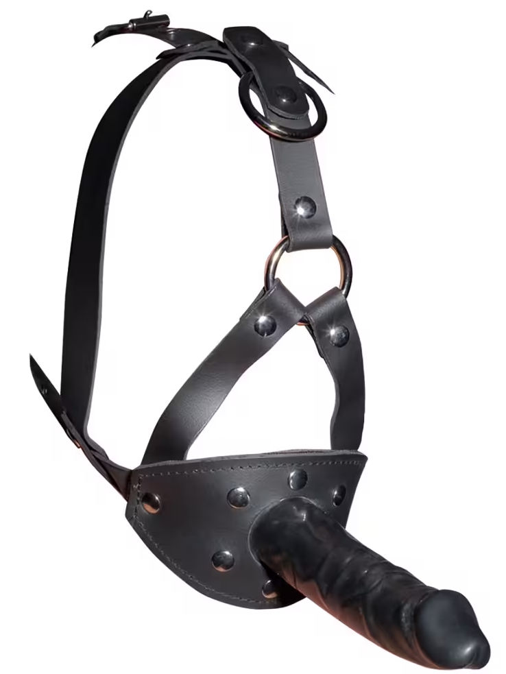 Kopfgeschirr mit Außendildo und Knebel