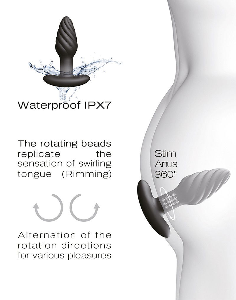 Entdecken sie vielfachen Stimulationsmöglichkeiten mit dem Dorcel Spin Plug. Der 360 Grad drehende Perlenschaft stimuliert den Schließmuskel und Analeingang - und das in sieben versichiedenen Rotationsmodis.