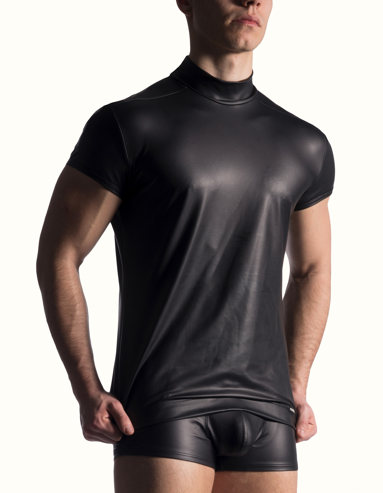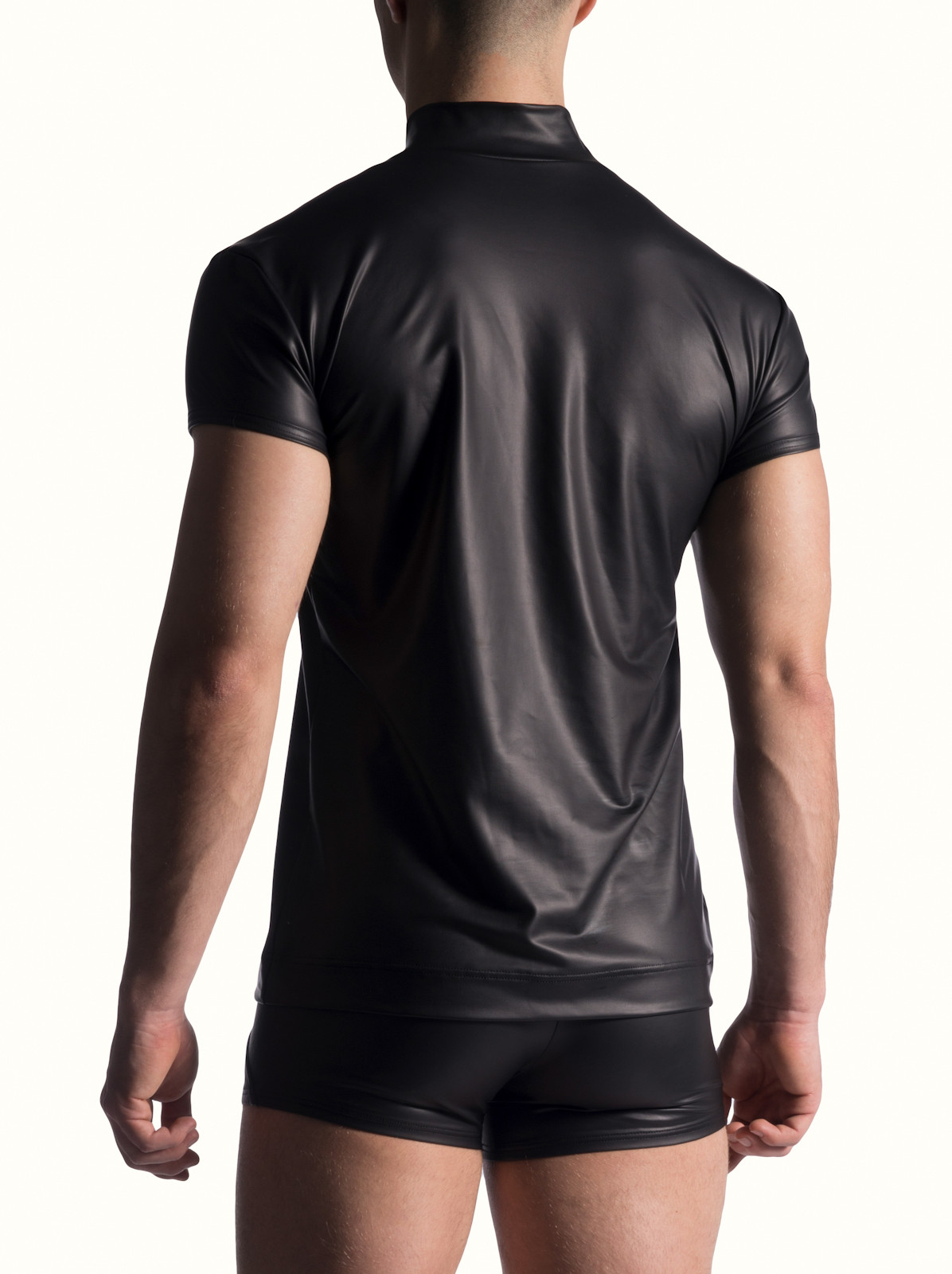 Top Qualität aus Deutschland,  Fetisch Shirt aus weicher, schwarzer Mikrofaser mit einem satten, seidenmatten Finish in Kunstlederoptik. Fühlt sich grandios an, und ist zudem leicht zu pflegen.