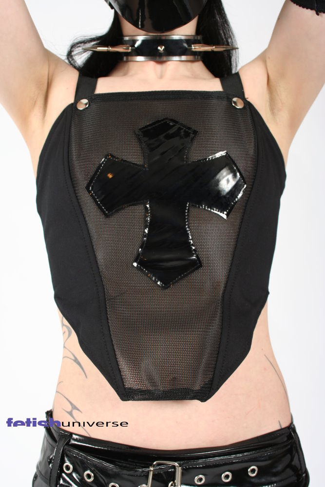 Top mit Netzeinsatz und schwarzem Lackkreuz